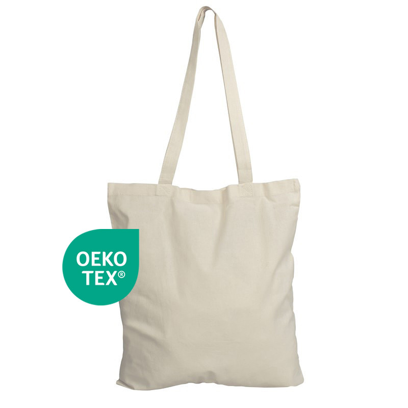 Textilná odnosná taška vyrobená zo 100% bavlny s uchami prešitým krížovým stehom. Rozmer tašky 38x42 cm. Medzinárodná certifikácia OEKO-TEX® potvrdzuje zdravotnú nezávadnosť tašky.