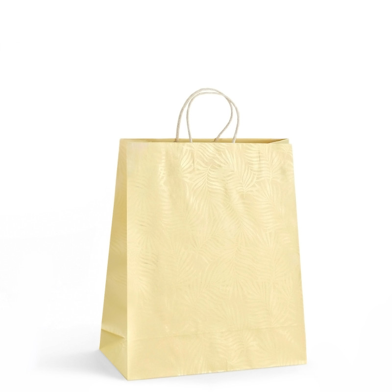 Väčšia béžová papierová luxusná taška APULIE z papiera 130g s lesklým efektom o rozmere 32x13x39 cm sa výborne hodí na väčšie darčeky a značkový tovar prvotriednej kvality. Elegancia tašky APULIE je umocnená leskom jemných farieb a vzorov v béžovom odtieni. Taška je opatrená krúteným bavlneným uchom.