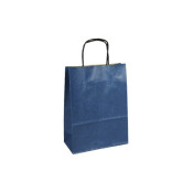 Sú vyrobené z hnedého jemne ryhovaného kraftového papiera 110 gr alebo 120 gr. Ponúkame ich v týchto veľkostiach a typoch ucha: Blu Glass 12x9x39 - modrá bavlnená šnúrka ukončená uzlom, Blu Glass 18x9x39 - krútené papierové ucho vlepené, Blu Glass 25x11x41 - krútené papierové ucho vlepené. U všetkých rozmerov je nosnosť tašky 12 kg pri rozloženej hmotnosti. Potlač je možná sieťotlačou.