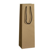 Elegantná a pevná taška na víno z hnedého kraftového papiera, vďaka ktorému sa na prvý pohľad z tašky nevytráca ekologický tón. Uši sú viazaná bavlnená šnúrka, vrchná a spodná časť tašky má vystuženie. Celková nosnosť tašky, ako pre jednu fľašu, tak aj dve, je až 6 kilogramov rozloženej hmotnosti.