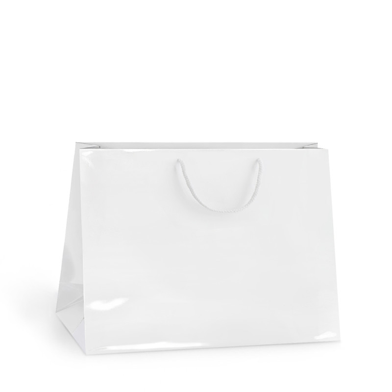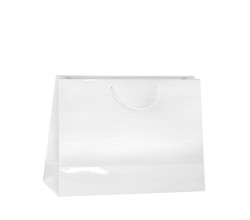 Darčeková papierová taška Monza vo formáte A4 na šírku v pevnom lesklom prevedení. Svojím rozmerom 37x12x29 cm je vhodná aj na dokumenty A4 alebo darčeky vrátane fliaš.