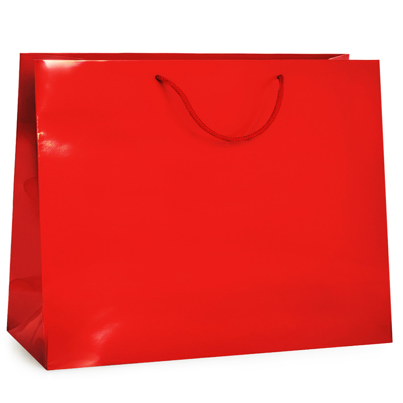 Najväčšia červená darčeková taška z rady Milano, s lesklou lamináciou a bavlneným uchom. Svojím rozmerom 55x14x48 cm je vhodná pre najväčšie darčeky alebo luxusné produkty.