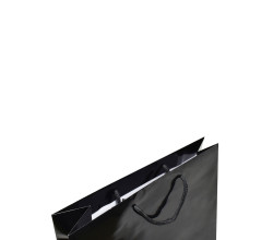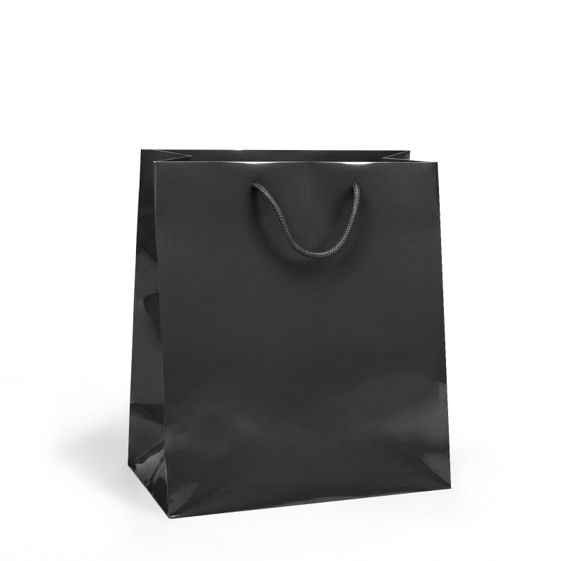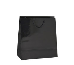 Väčšia čierna luxusná darčeková taška Milano, v lesklom prevedení, s bavlneným uchom a rozmerom 36x12x40 cm. Vhodná pre objemnejšie darčeky a produkty, vrátane tažších vecí.