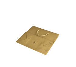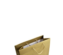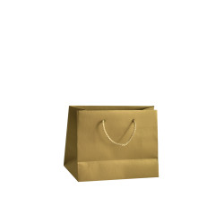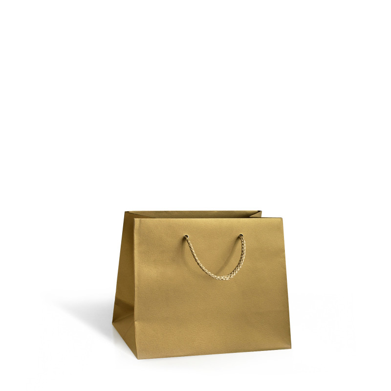 Menšia, luxusná zlatá taška Gold, v rozmere 25x11x20 cm s textilným uchom. Taška je vyrobená zo štrukturovaného papiera.