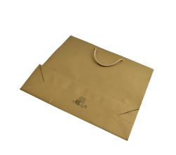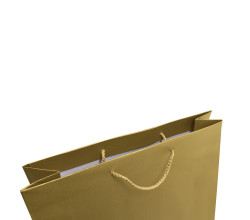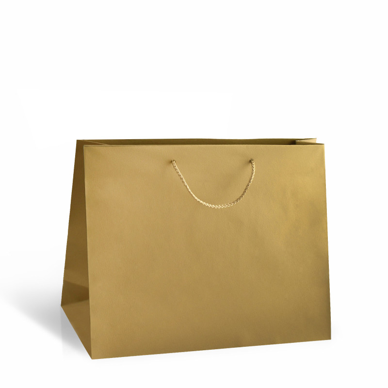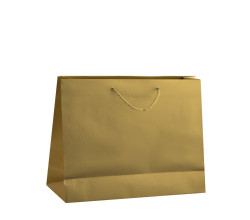 Stredne veľká, zlatá taška Gold so zlatými ušami. Taška sa so svojím rozmerom 41x12x35 cm hodí aj na fľašu vína s delikatesami.