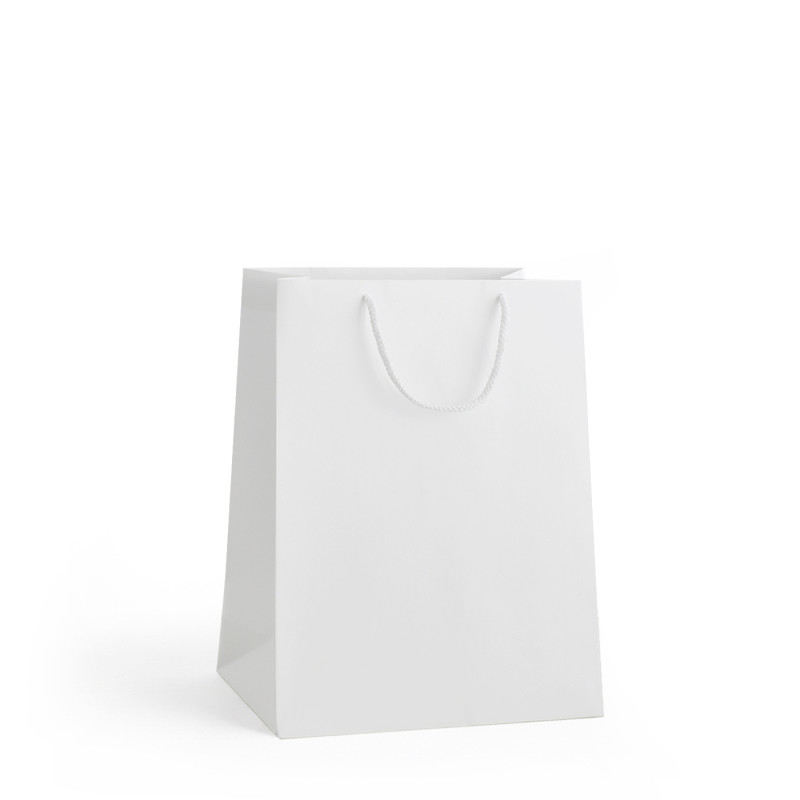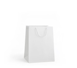 Menšia biela darčeková papierová taška Monza Natura z kvalitného kraftového papiera vyššej gramáže (160 g/m2) a bavlneným uchom elegantne zakončeným plastovým háčikom. Svojím rozmerom 25x11x35 cm je vhodná pre dokumenty A4 a menšie darčeky alebo do luxusných obchodov.