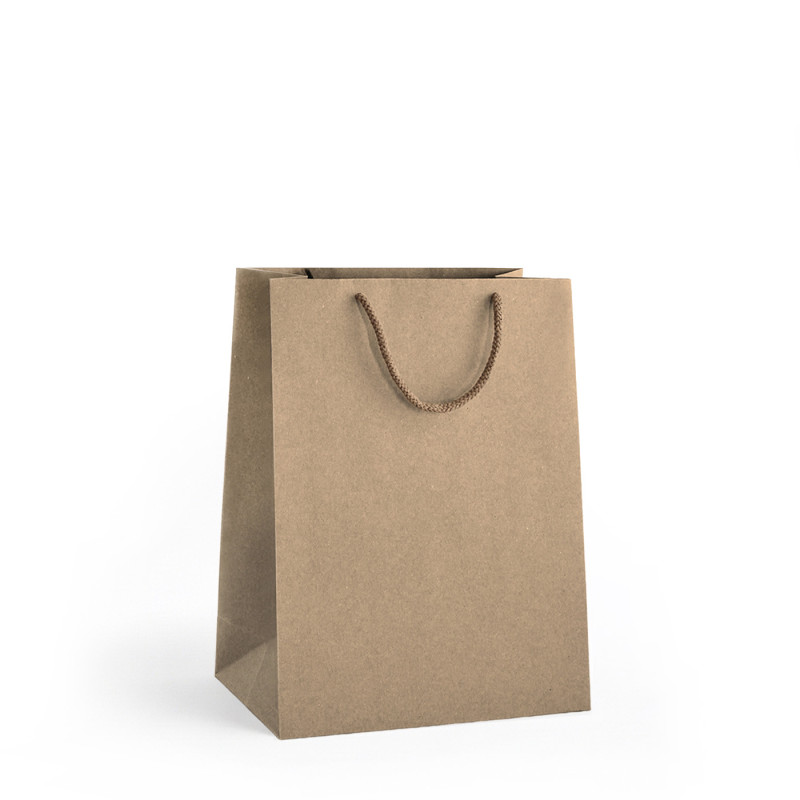 Menšia hnedá darčeková papierová taška Monza Natura z kvalitného kraftového papiera vyššej gramáže (186 g/m2) s bavlneným uchom elegantne zakončeným plastovým háčikom. Svojím rozmerom 25x11x35 cm je vhodná pre dokumenty A4 a menšie darčeky alebo do luxusných obchodov.